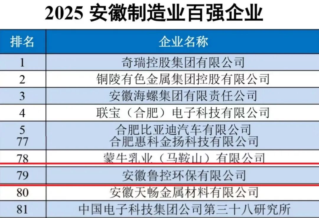 近日,“2025年安徽制造业百强企业”榜单正式揭晓,山东环保集团权属安徽鲁控环保有限公司连续三年榜上有名。